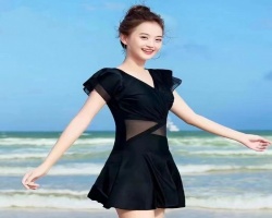 NT$1298自帶胸墊 自帶安全褲 終於找到不尷尬的保守泳衣 連體裙式 荷葉袖 網紗腰藏肚 V領露鎖骨 露背又不暴露 保守派也能美到發光詳情 - 第三代研磨機NT$1080