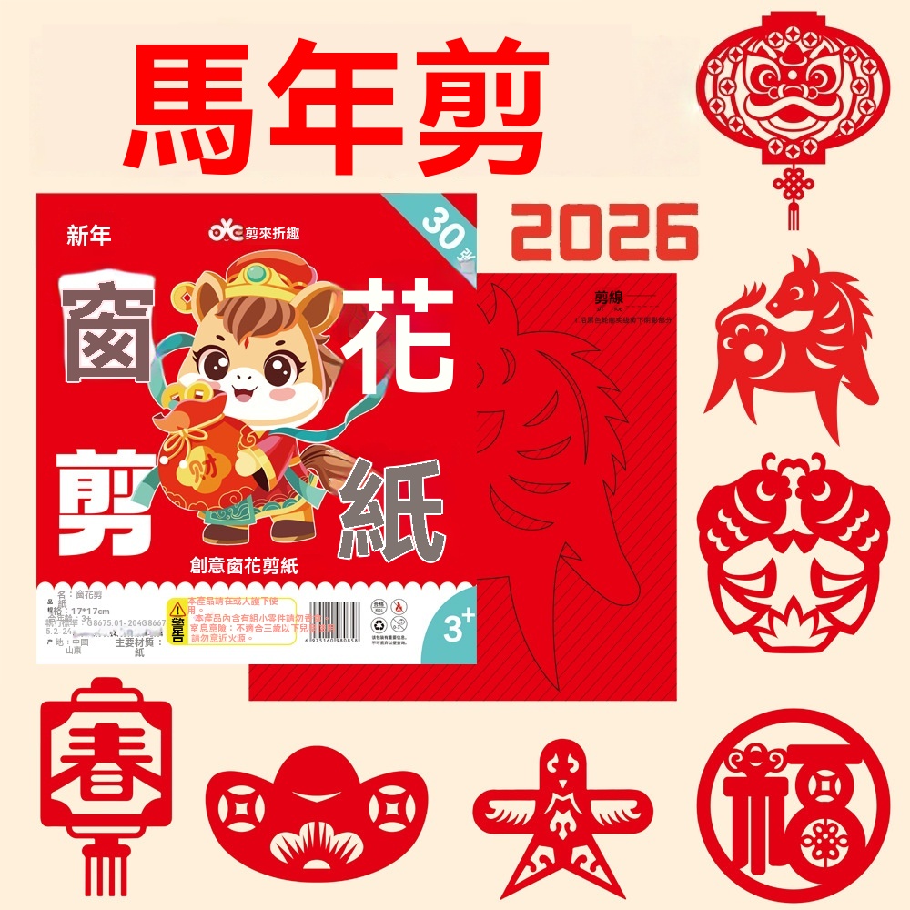 馬年新款窗花剪紙!益智手工DIY玩具!讓孩子主動放下手機電視,安靜一整天!圖案超豐富,不重樣!每個都精緻又喜慶